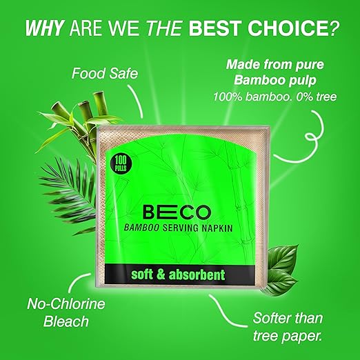 Beco serving napkins are made from 100% bamboo fibers which makes it natural and compostable as compared to tree-based serving napkins.