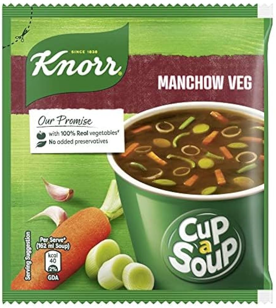 Knorr Manchow Veg Cup-A-Soup Add a Chinese zing to your palette by sipping on Knorr Manchow veg Cup-a-Soup, the ideal snack! Knorr Cup-a-Soup satisfies your small hunger pangs in just 1 minute.